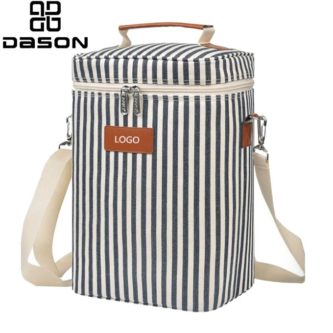 எங்கள் மது குளிர்விப்பான் 600D பாலியஸ்டரால் செய்யப்பட்ட பை, மற்றும் கோடிட்ட வண்ணங்கள் நன்றாக இருக்கும் நாகரீகமான